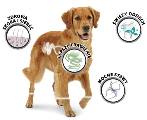 Wzbogacone w naturalne składniki pomagające zapewnić świeży oddech psa.