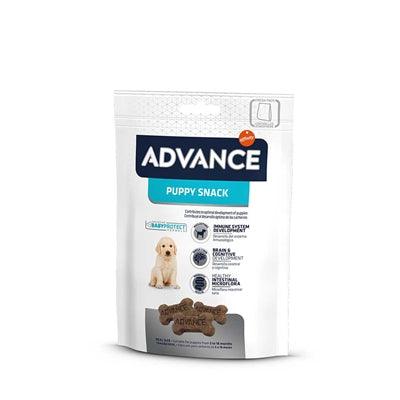 De Advance Puppy Snack 150 gr is een hondensnack voor puppy's tussen de 3 en 18 maanden oud. Verwen jouw pup met deze heerlijke snacks van Advance! De snacks zijn speciaal ontwikkeld om jouw pup te begeleiden tijdens de belangrijkste fase in de ontwikkeling. De snacks bevatten prebiotica uit cichoreiwortel en omega 3 en hebben een overheerlijke smaak.