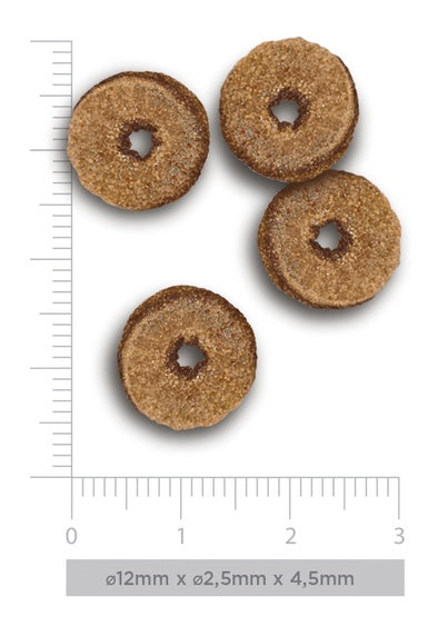 białko surowe 32,00%, tłuszcz surowy 18,00%, kwasy tłuszczowe omega-3 0,50%, kwasy tłuszczowe omega-6 2,20%, włókno surowe 2,75%, popiół surowy 8,00%, wapń 1,10%, fosfor 0,90%