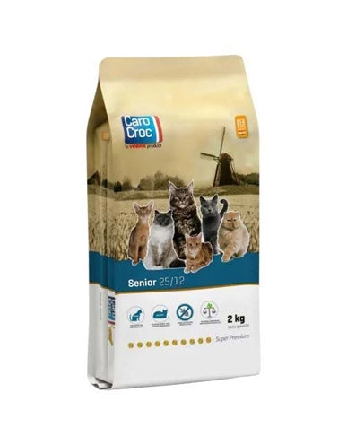 CaroCroc Kat Senior is een superpremium droogvoeding, speciaal afgestemd op de behoeften van katten vanaf ongeveer 8 jaar. Oudere katten hebben een lagere energiebehoefte en een gevoeligere stofwisseling. Daarom bevat dit voer bewust minder eiwitten, vetten en mineralen, waardoor organen zoals nieren en blaas minder belast worden. Dit draagt bij aan een gezond en vitaal leven, ook op hogere leeftijd.