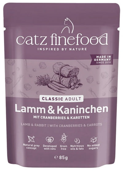 Specjał dla kotów – wartościowa karma dla naszych pupili. Catz finefood N°11 zawiera dużo delikatnej jagnięciny, królika oraz zdrowe dodatki, jak żurawina i marchew. Bez konserwantów, barwników i wzmacniaczy smaku. Nie zawiera GMO. Mmmmiau!