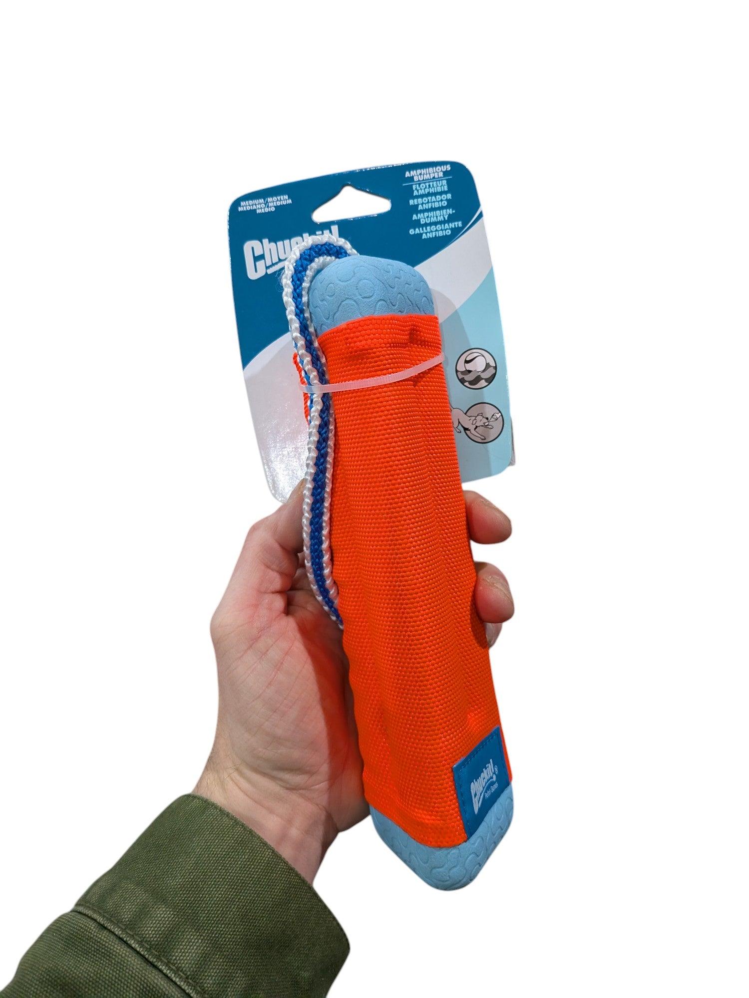 De Chuckit Amphibious Bumper Assorti is het perfecte apporteerspeeltje voor honden die dol zijn op waterpret. Deze duurzame dummy blijft hoog op het water drijven, waardoor hij goed zichtbaar is en gemakkelijk door je hond kan worden opgepakt. De opvallende oranje of groene kleur zorgt ervoor dat het speeltje niet snel uit het zicht raakt. Dankzij het touw aan het uiteinde kun je de Bumper extra ver werpen, wat zorgt voor nog meer plezier en uitdaging. Ideaal voor spelen op het strand, in meren of andere waterrijke omgevingen.