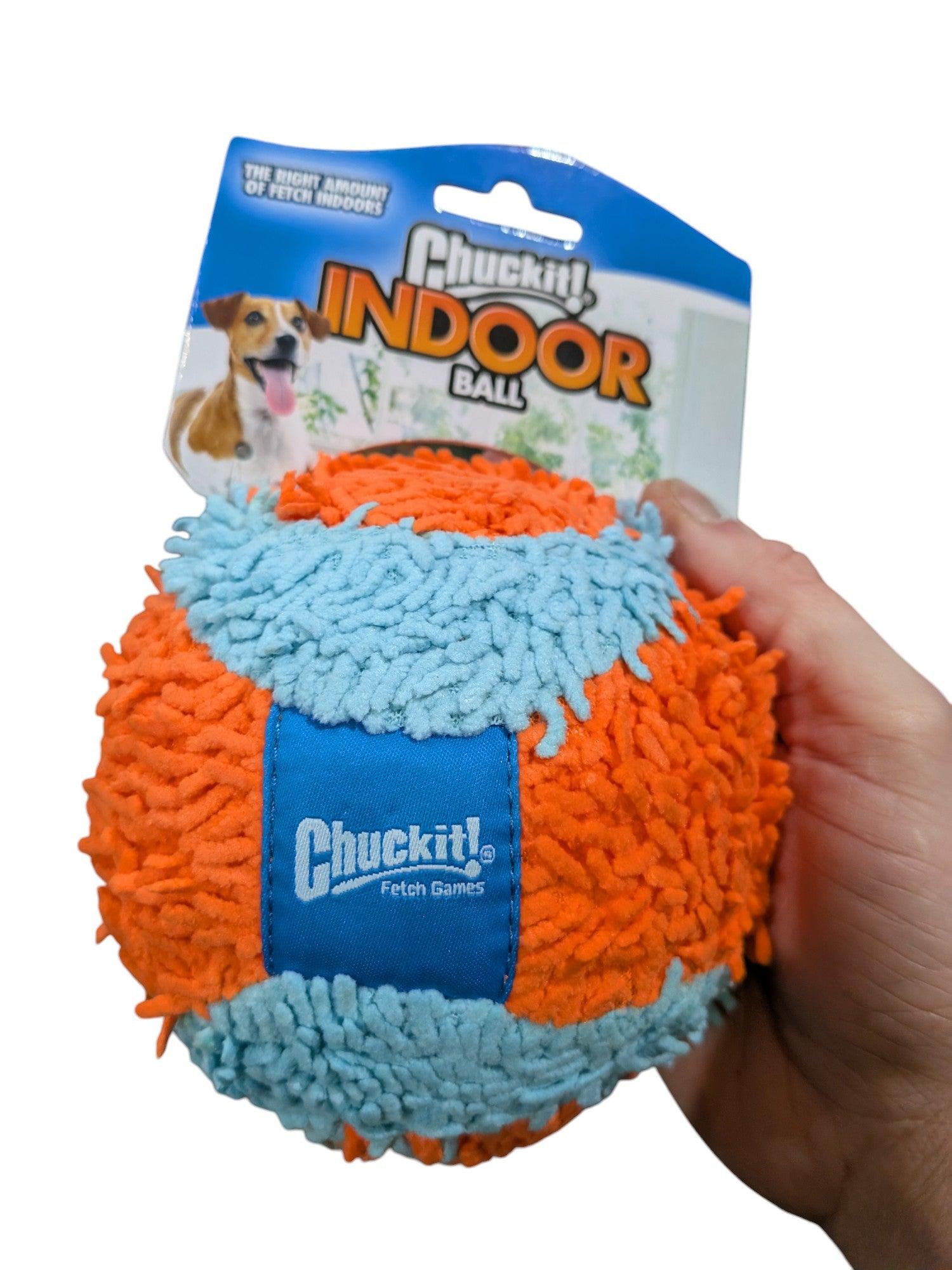 De Chuckit Indoor Bal is speciaal ontworpen voor honden die binnenshuis graag met een bal spelen, zonder dat dit schade veroorzaakt aan meubels of geluidsoverlast geeft. Dankzij de zachte kern en de buitenkant van gerafelde chenille-stof beweegt de bal geruisloos door het huis. De kern van schuimrubber zorgt ervoor dat de bal zijn vorm behoudt, terwijl de flexibele buitenlaag zorgt voor een onvoorspelbare en hoge stuiter, wat het spel extra leuk maakt.