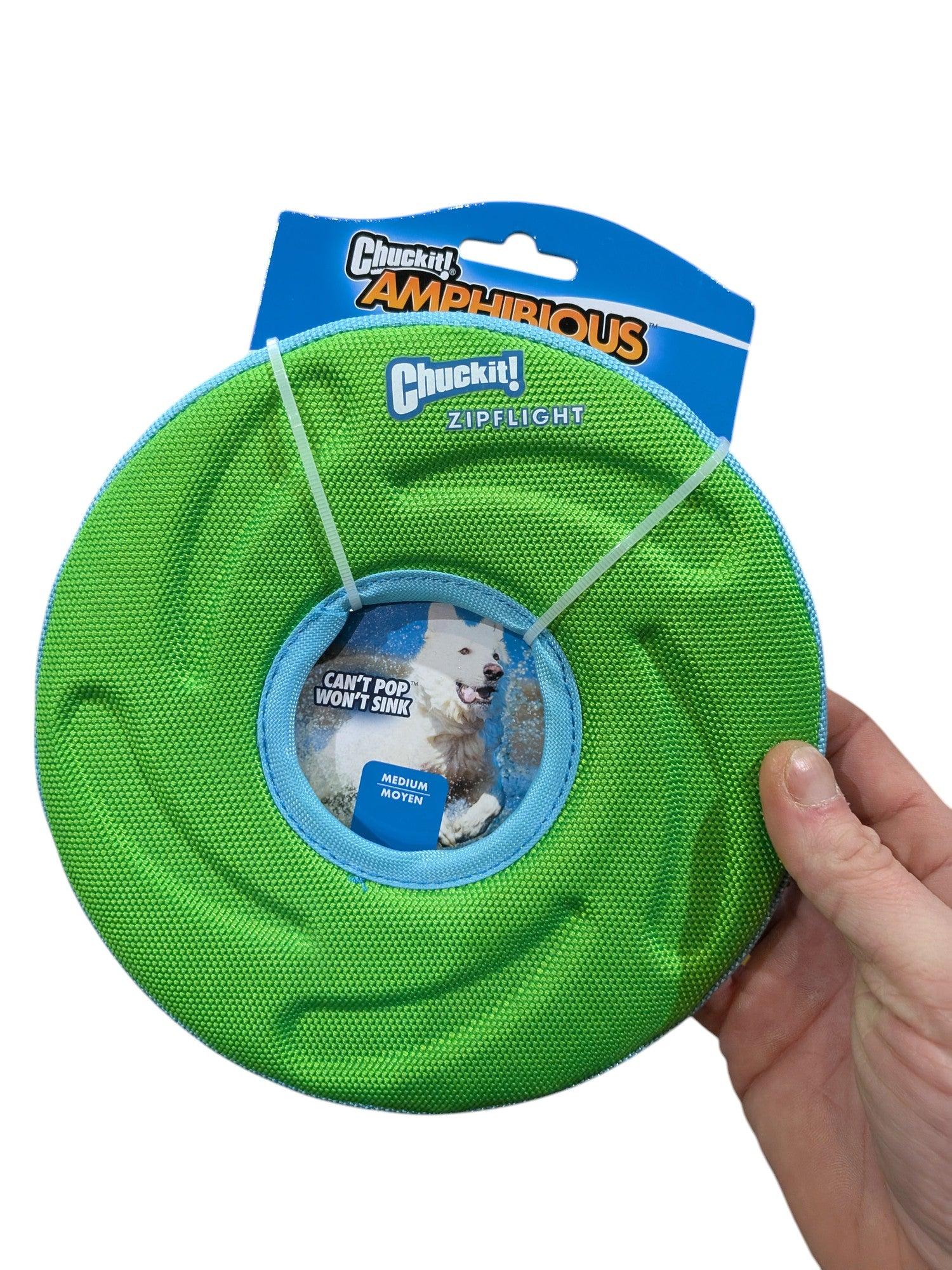 De Chuckit Zipflight is een ideale frisbee voor honden die dol zijn op apporteren, zowel op het land als in het water. Dankzij het lichte gewicht blijft deze frisbee drijven, waardoor hij perfect is voor spelletjes op het strand, in het zwembad of bij meren. Door de speciale vorm stijgt de frisbee iets op tijdens het gooien, waardoor het voor jouw hond makkelijker wordt om hem te vangen. Of je nu op het strand, in het park of in de tuin speelt, met deze Zipflight beleef je samen eindeloos plezier!