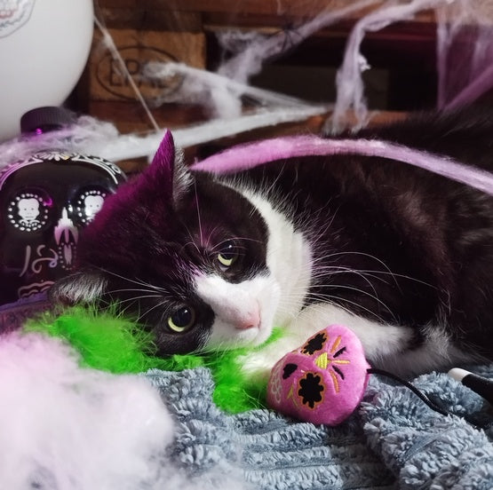 Zabawka jest przyjemna w dotyku, a wygodny kijek dobrze leży w dłoni, dzięki czemu łatwo prowadzić dynamiczną zabawę bez męczenia nadgarstka. Upiorek zachęca do wbijania pazurów, podskoków i sprintów, czyli wszystkiego, co koty kochają najbardziej: krótkich, intensywnych sekwencji polowania zakończonych „złapaniem” zdobyczy.
