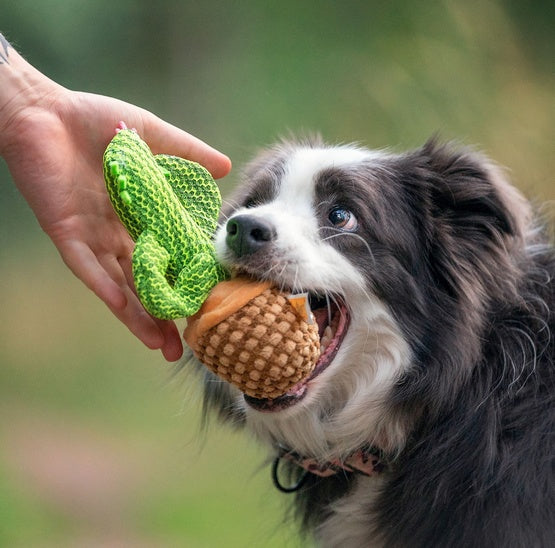 Dolores i doniczka, w której się znajduje zostały uszyte z różnych materiałów, więc oprócz dobrze spędzonego czasu, Dolores dostarczy też Twojemu psu nowych doznań sensorycznych i pobudzi jego umysł!