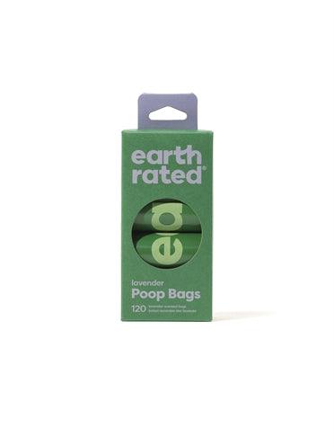 De Earth Rated poepzakjes met lavendelgeur maken hondenwandelingen hygiënisch én fris. Deze verpakking bevat 8 rolletjes met elk 15 zakjes (120 stuks totaal), gemaakt van 65% gerecycled materiaal.