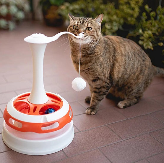 Zabawka dla kota z kilkoma piłeczkami, które poruszając się sprawią, że kot nie jest w stanie powstrzymać się od pogoni za nimi.
