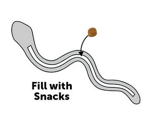 Wąż posiada na spodzie rozcięcie, w którym można umieszczać przysmaki, także w formie pasty.