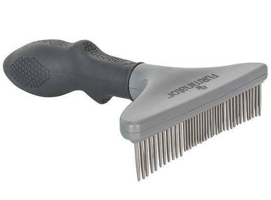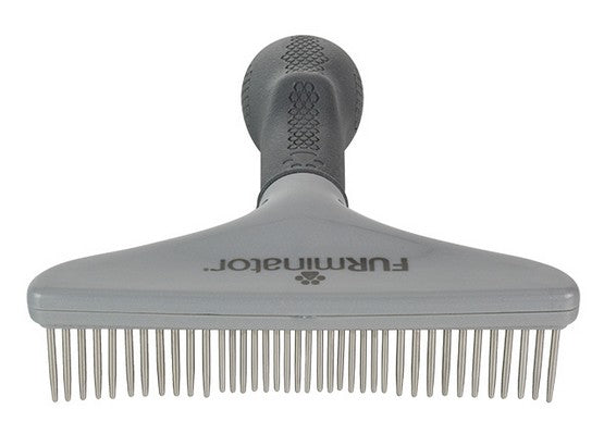 Bogata linia akcesoriów groomerskich FURminator® zawiera szeroki grzebień, odpowiedni dla wszystkich zwierząt długowłosych, grzebienie do wykończenia fryzury, ułatwiające rozczesywanie sierści długiej, kręconej, jedwabistej i szorstkiej, a także gumowe zgrzebło, które stymuluje wytwarzanie i rozprowadza naturalny łój, dzięki czemu sierść krótka i średnia wyglądają zdrowo i lśniąco.