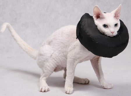 Wykonany z tkaniny poliestrowej, wypełniony włóknem poliestrowo silikonowym. Zapinany na rzep. Tzw. „oponka”. W wewnętrznej części kołnierza zastosowano szlufki, w które wsuwa się dobrze dopasowaną obrożę i zapina ją na szyi psa lub kota, następnie zapina się rzep ściągając dość mocno kołnierz. Kołnierz ten jest alternatywą dla dotychczasowych rozwiązań zabezpieczeń, nie powoduje zaburzeń pola widzenia nie powoduje zaburzeń pola słyszenia. Pozwala na komfortowe spożywanie posiłków i wody. „Nie rozbija otoczenia i właściciela”. Doskonale spełnia swoje funkcje. Jest wodoodporny, można go prać w pralce i suszyć w suszarce bębnowej, można także umyć ściereczką.