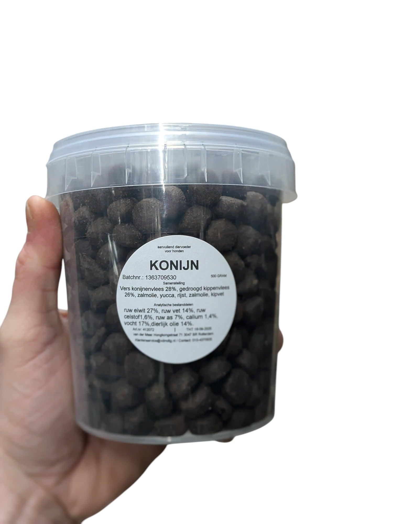 De I Am Konijn Knikkers 500 gr aanvullende hondensnack zijn handige beloningssnoepjes voor jouw hond met konijn. Deze snacks van konijnenvlees hebben de grootte van een knikker en kun je gebruiken als beloning of tussendoortje. Zo maak je van elke training een feestje. Het ingrediënt konijnenvlees maakt de trainers aantrekkelijk en smakelijk.