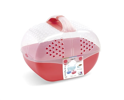 Neem jouw cavia, hamster, chinchilla of ander klein dier mee in deze kleurige transportbox. De bovenkant van de box open je net als een handtas: klik de helften van elkaar af. Dicht doe je hem door de helften tegen elkaar te zetten en de veiligheidsklem vast te klikken. Zo kun je jouw kleine dier met je meenemen.