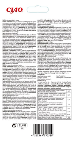 Samenstelling: Water, kip, tapiocazetmeel, natuurlijke smaakstoffen, guargom, calciumcarbonaat, natuurlijke tonijnaroma, visolie, vitamine E-supplement, taurine, groene thee-extract