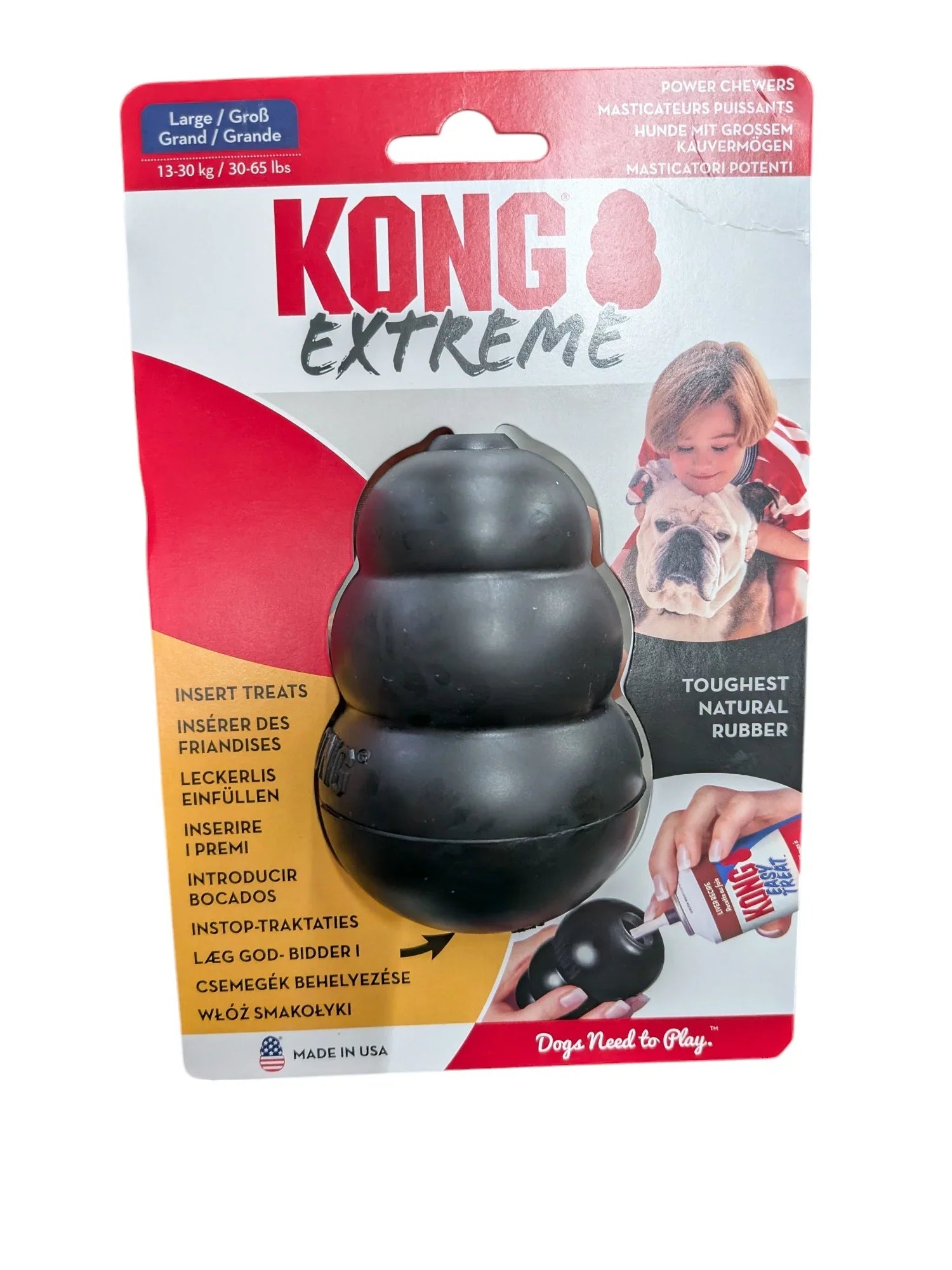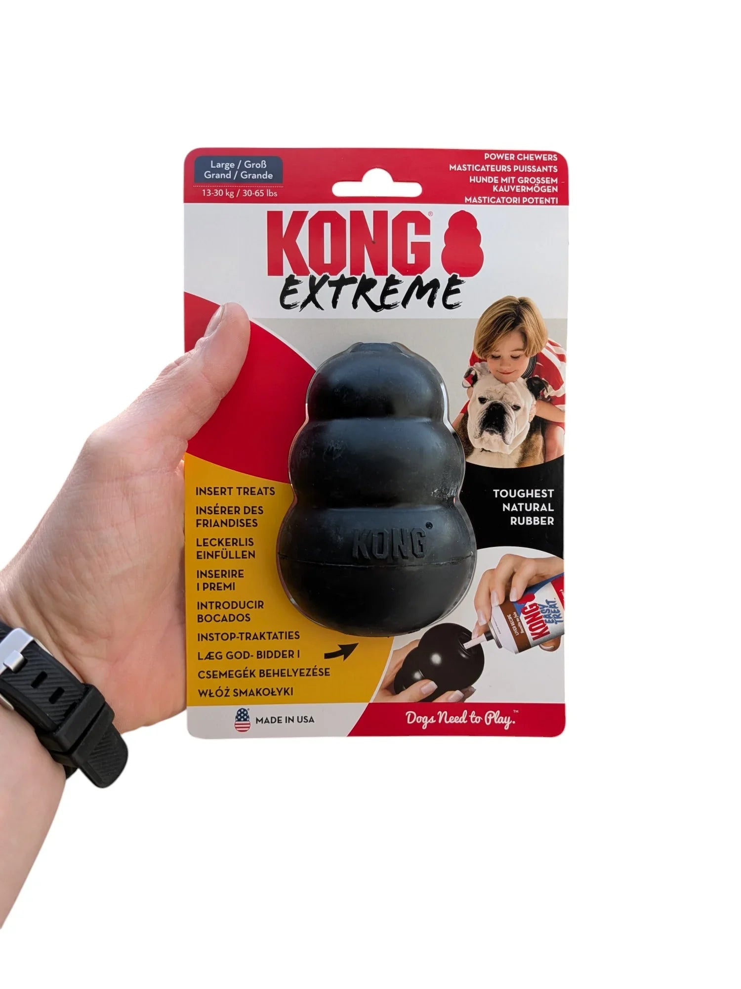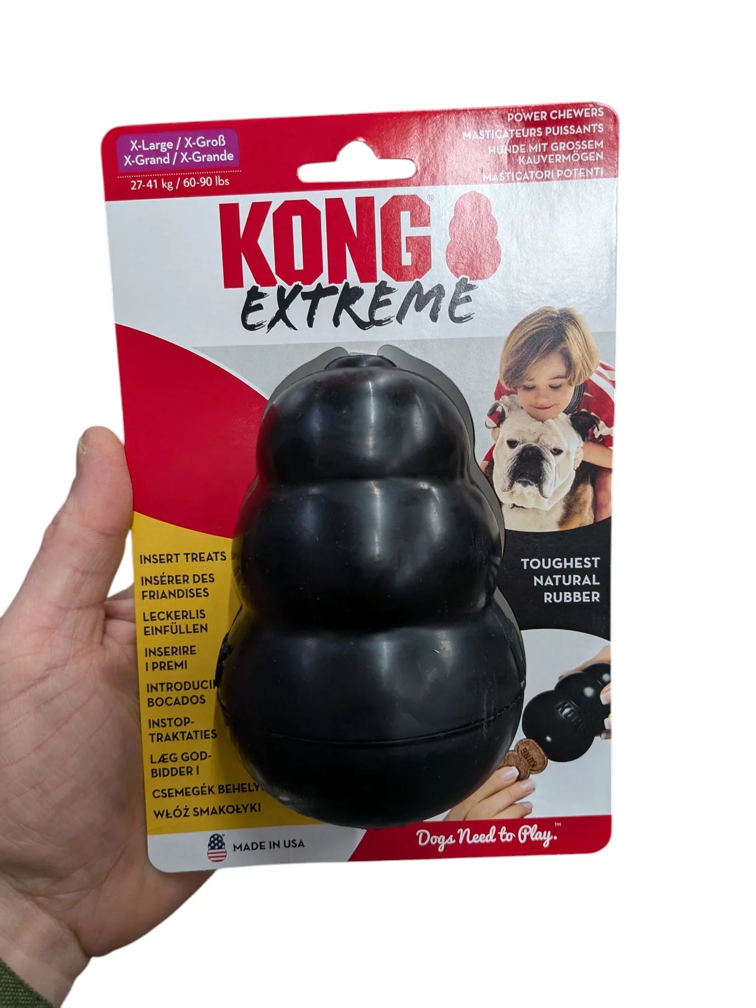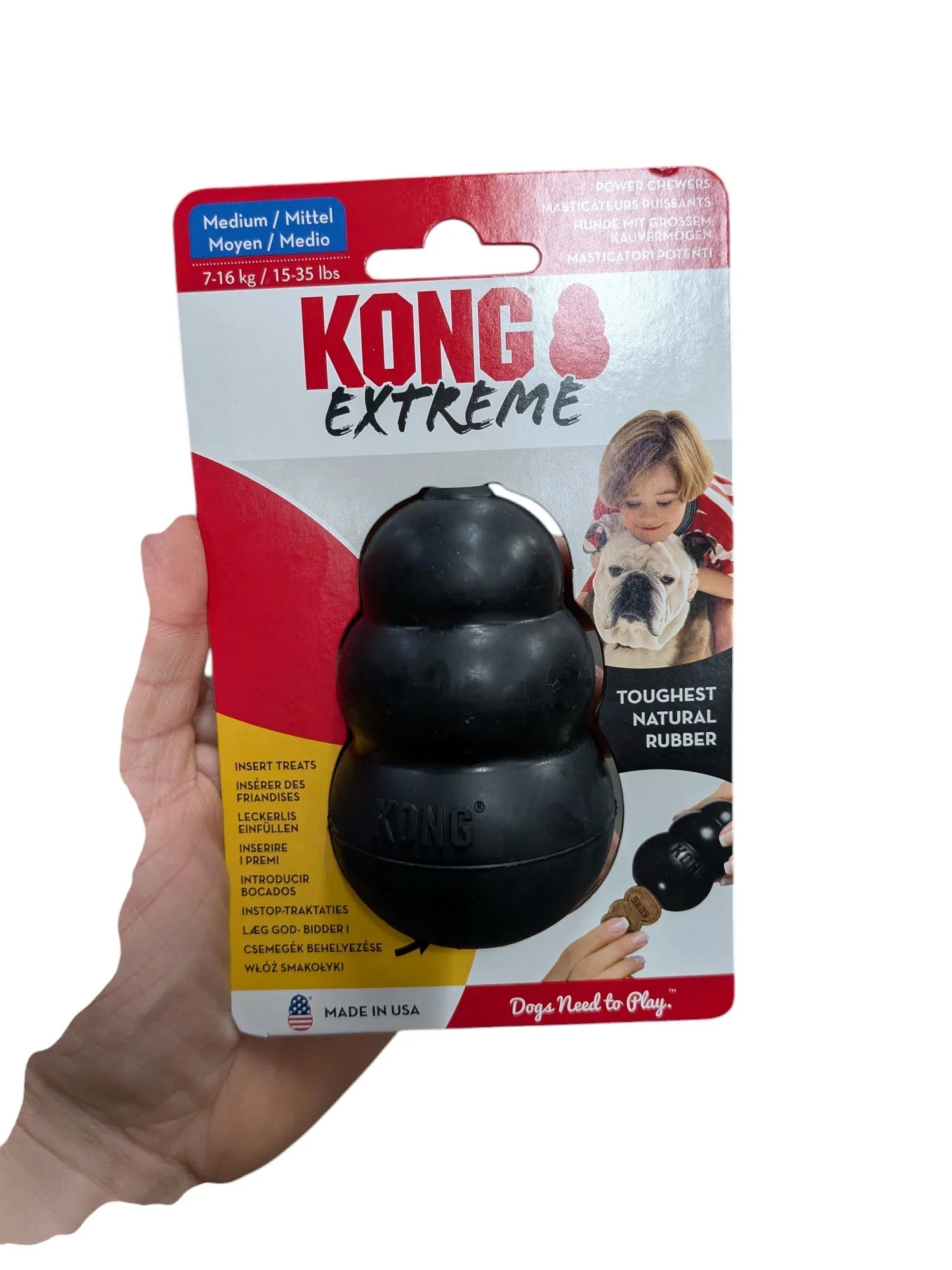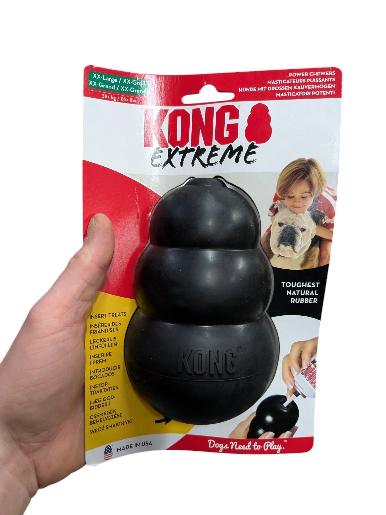 De KONG Extreme Zwart is ontworpen voor honden die stevig kauwen en extra uitdagend speelgoed nodig hebben. Dit veelzijdige speeltje helpt verveling tegen te gaan, stimuleert actief spelen en draagt bij aan een gezond gebit. Dankzij het robuuste, natuurlijke rubbermateriaal is dit een ideale keuze voor krachtige kauwers.