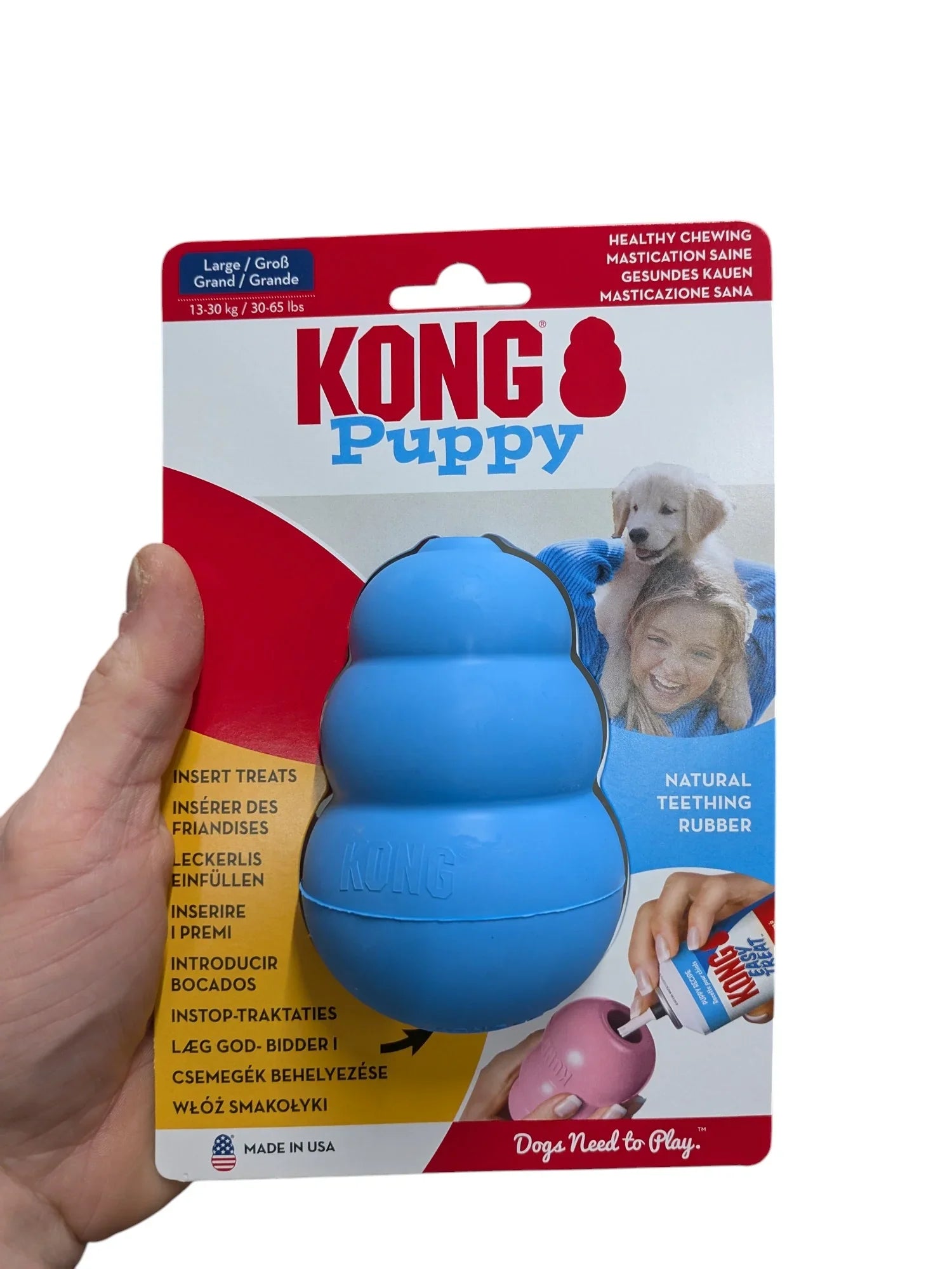 De KONG Puppy is verkrijgbaar in drie maten, zodat je de juiste maat kunt kiezen voor jouw pup: