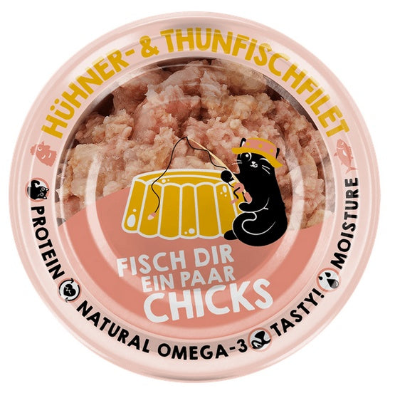 Oczywiście składniki są również przyjazne dla kotów! Bez zbóż, bez ryżu, bez dodatku cukru – to nie mieści się w naszej recepturze. Ale za to jest dużo mięsa i ryb! Szczególnie miłośnicy ryb będą zadowoleni, bo połączyliśmy tuńczyka z mnóstwem przysmaków. Na przykład z łososiem, krewetkami czy filetem z kurczaka. Jest też tuńczyk z jabłkiem lub warzywami. Każdy znajdzie coś dla siebie! A jeśli Twój kot nie lubi ryb, podawaj mu filet z kurczaka.