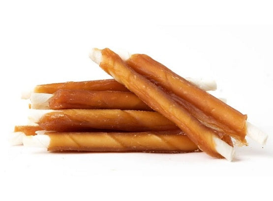 (Chicken roll on Rawhide stick)