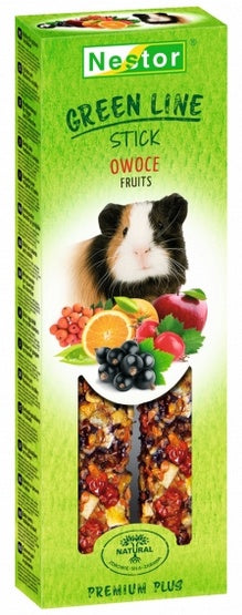 Nestor Kolba Gryzoń Green Line Owoce (2 szt.) to naturalna przekąska urozmaicająca codzienną dietę gryzoni i królików. Ma formę dwóch kolb na drewnianej listewce, dzięki czemu zwierzę nie tylko je, ale też pracuje: musi podgryzać, odrywać i „wyszukiwać” ulubione kawałki. To świetny sposób na zajęcie pupila na dłużej, ograniczenie nudy w klatce oraz wsparcie prawidłowego ścierania stale rosnących zębów.