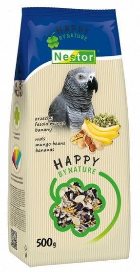 HAPPY BY NATURE – idealnie dopasowany i zbilansowany pokarm klasy PREMIUM z orzechami, fasolą mungo i bananami, został specjalnie przygotowany z myślą o dużych papugach. Mieszanka pozbawiona sztucznych składników, barwników, konserwantów, starannie dobrana zgodnie z potrzebami i wymaganiami żywieniowymi dużych papug, z siłą płynącą wprost z serca natury wspomaga ich zdrowie, kondycję i dobre samopoczucie.