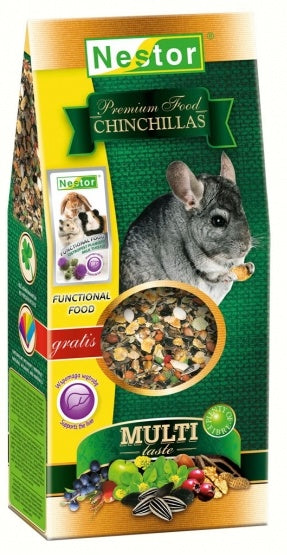 Wielosmakowy pokarm MULTI-TASTE PREMIUM oparty jest wyłącznie na naturalnych składnikach. Nie zawiera nie tylko żadnych konserwantów, ale i barwników. Receptura tej doskonale zbilansowanej mieszanki została opracowana z myślą o szynszylach tak, by zapewnić im wyjątkowo smaczne pożywienie, które jednocześnie dostarcza wszystkich niezbędnych składników, wspomagających zdrowie i prawidłowe funkcjonowanie organizmów tych uroczych gryzoni.