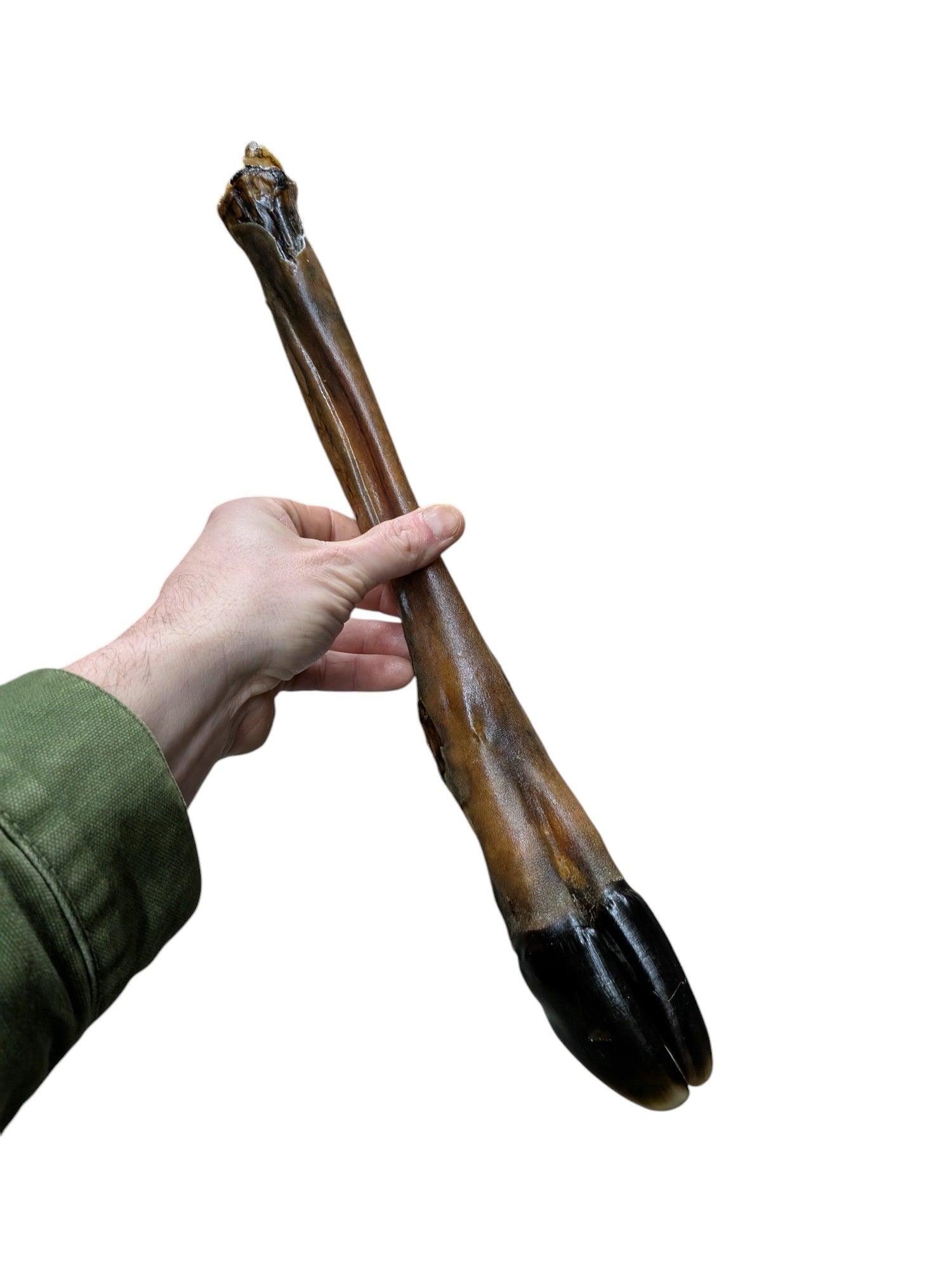 Elke verpakking bevat 1 poot van een hert. Dit is een groot, hard product dat vooral geschikt is voor middelgrote en grote honden met een sterke kauwbehoefte.