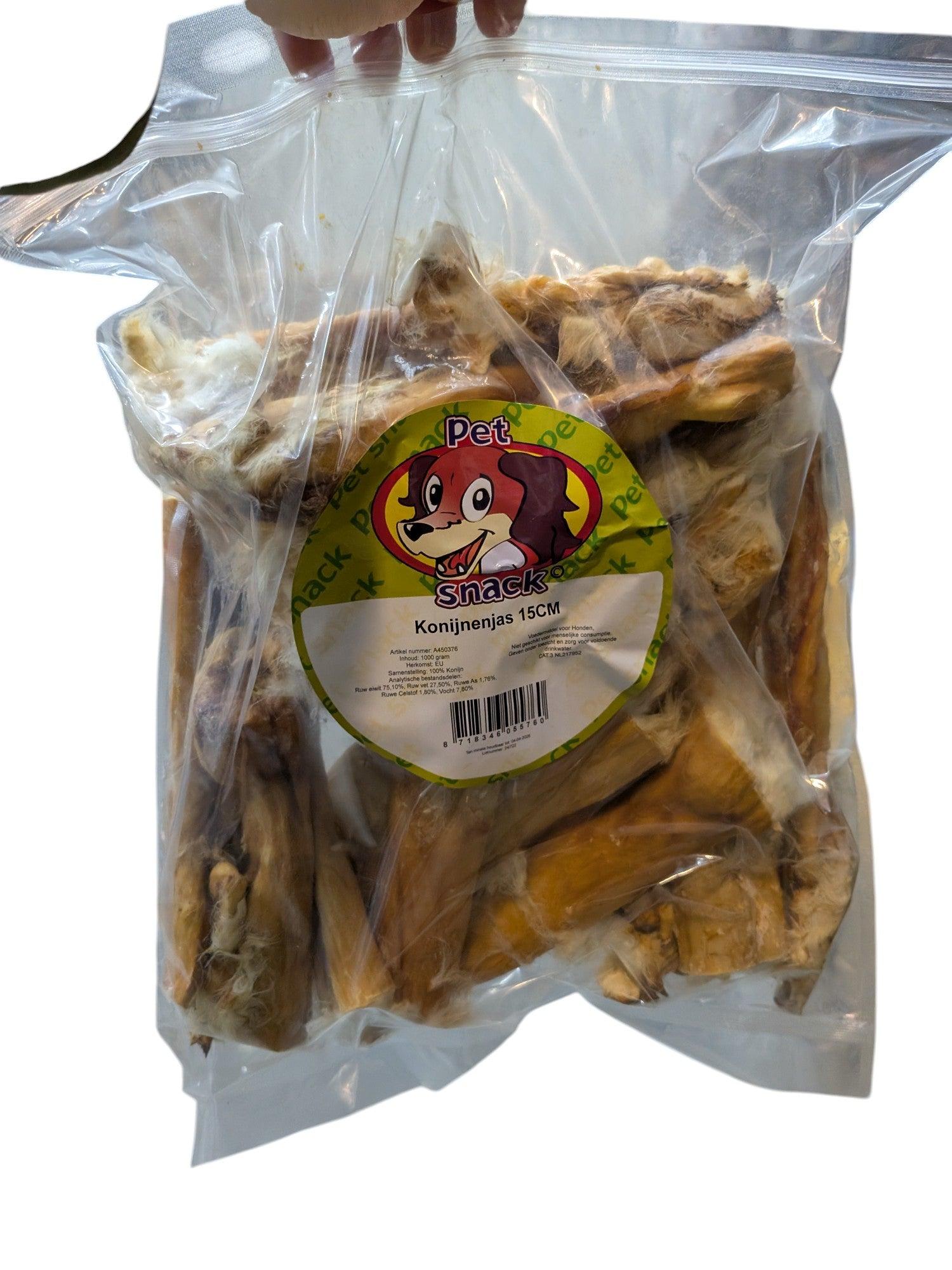 De Petsnack Konijnenjas 15 cm 1 kg is een hondensnack van 100% konijnenhuid met haar en is een ideale traktatie voor honden, vooral voor degenen met intoleranties voor eiwitten uit reguliere bronnen zoals rund of kip. Met een hoog eiwitgehalte van 75,1% biedt deze snack een voedzame optie voor je viervoeter. Het natuurlijke product ondersteunt een gezonde spijsvertering en draagt bij aan het reinigen van de tanden.