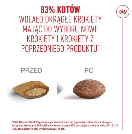 Krokiety w karmie ROYAL CANIN® AGEING 11+ STERILISED zostały opracowane i przetestowane przez koty starsze tak, aby ułatwić im jedzenie i sprawić, aby każdy posiłek był przyjemnością.