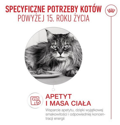 wyjątkowa smakowitość oraz wysoka koncentracja energii wpływają korzystnie na apetyt i pomagają w utrzymaniu optymalnej masy ciała u kotów starszych.
