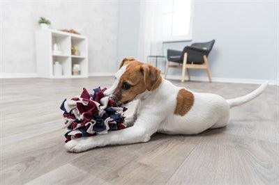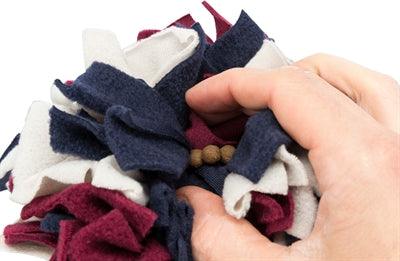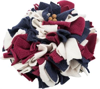 De Trixie Dog Activity Snuffelbal is een innovatieve speelbal die het principe van een snuffelmat combineert met de speelsheid van een bal. Deze bal is gemaakt van zacht polyester en bestaat uit franjes van verschillende lengtes, waarin je beloningssnoepjes of zelfs het dagelijkse voer kunt verstoppen. Je hond moet rollen, snuffelen en met de bal gooien om de verstopte snacks te vinden. Dit stimuleert zowel mentale als fysieke activiteit en helpt verveling tegen te gaan. Daarnaast draagt het bij aan een betere spijsvertering door schrokken tijdens het eten te voorkomen.
