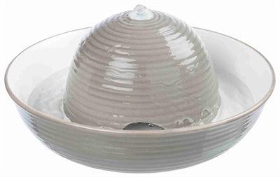 Deze drinkfontein van Trixie zorgt voor heerlijk fris drinkwater voor jouw hond of kat, in een fontein die ook nog stijlvol is. Deze drinkfontein is gemaakt van keramische schalen in grijs en wit. Deze zijn goed afneembaar, vaatwasserbestendig en daardoor zeer hygiënisch. De fontein zorgt voor stromend water dan langs de bovenkant omlaag stroomt naar de onderste schaal, waar in het water stilstaat. Jouw dier kan dus zelf kiezen voor stromend of stilstaand water. Door de ciruclatie is het water bovendien zeer zuurstofrijk. Door deze combinatie met het filter absorbeert het water minder geuren en smaakt het beter. De pomp is verstelbaar en bovendien geluidsarm. Het energieverbruik is laag, dus alleen maar voordelen voor mens en dier!