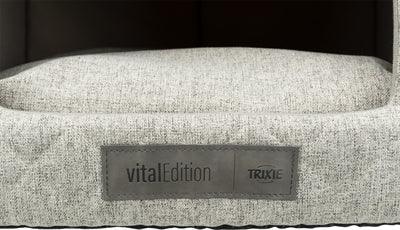 De mand is uitgerust met een wendbaar kussen met visco-elastische schuimvlokken en een schuimrubber vulling. Dit materiaal past zich aan de vorm van het lichaam aan en zorgt voor optimale ondersteuning, waardoor gewrichten en spieren minder belast worden. Het huisje is bekleed met zacht polyester voor extra comfort en heeft een slipvaste onderkant om te voorkomen dat het verschuift bij het in- en uitstappen. De afneembare hoes maakt het eenvoudig om het kussen schoon te houden.