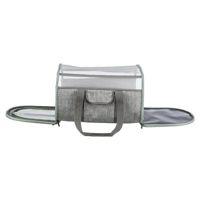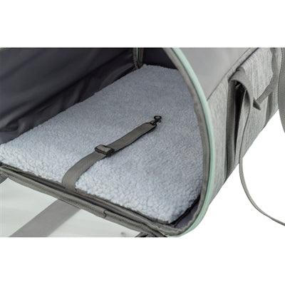 De Trixie Hondentas Dillon in grijs met mintgroen accent is een ruime en comfortabele reistas voor honden tot 10 kg, ideaal voor uitstapjes, reizen of bezoeken aan de dierenarts. Dankzij het slimme ontwerp met grote mesh-panelen blijft jouw hond goed geventileerd en beschermd tegen insecten.