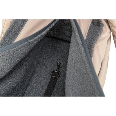 De binnenkant van deze tas is volledig gevoerd met een pluizige, warme teddystof, wat zorgt voor een comfortabel en knus gevoel voor je hond. De geïntegreerde korthouder voorkomt dat je hond uit de tas springt. Dankzij het ruime formaat en de zachte binnenkant is deze tas ideaal voor rustige honden die zich graag dicht bij jou bevinden.
