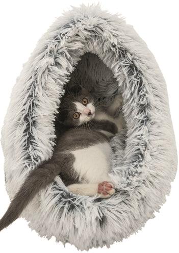 De Trixie Kattenmand Iglo Harvey Grijs / Wit-Zwart 41 x 35 x 26 cm is een comfortabele schuilplaats voor de kat, een iglo bekleed met velours en langharig pluche. Jouw kat voelt zich heerlijk veilig en beschermd in deze leuke iglo van Trixie! Deze mand heeft een afgesloten vorm, wat de kat een geborgen gevoel geeft. De rand en binnenzijde van de iglo zijn bekleed met heerlijk zacht langharig pluche en de buitenkant is bekleed met velours. Door de schuimrubber vulling is de iglo vormvast. De slipvaste onderkant zorgt ervoor dat de iglo niet verschuift bij het in- en uitstappen.