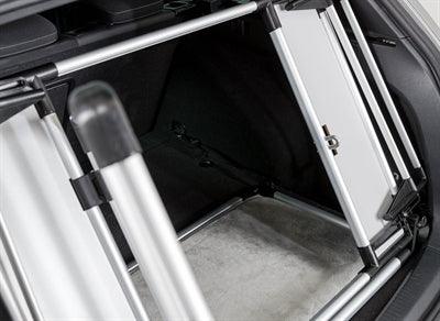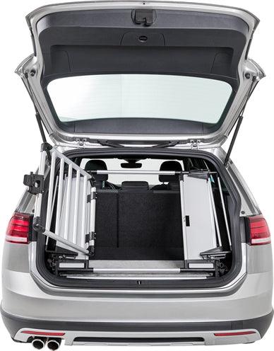 Belangrijk om te weten: dit product is geen transportbench of vaste kooi, maar een afscheidingshek dat je plaatst achter de achterklep. Het is speciaal ontworpen om de volledige bagageruimte om te vormen tot een veilige ligplek voor je hond. Zo geef je jouw hond alle ruimte om comfortabel te liggen, zonder dat hij bij het openen van de klep direct naar buiten kan springen. Ideaal voor baasjes die liever geen grote bench in- en uitladen, maar wel een veilige én ruimtelijke oplossing willen.