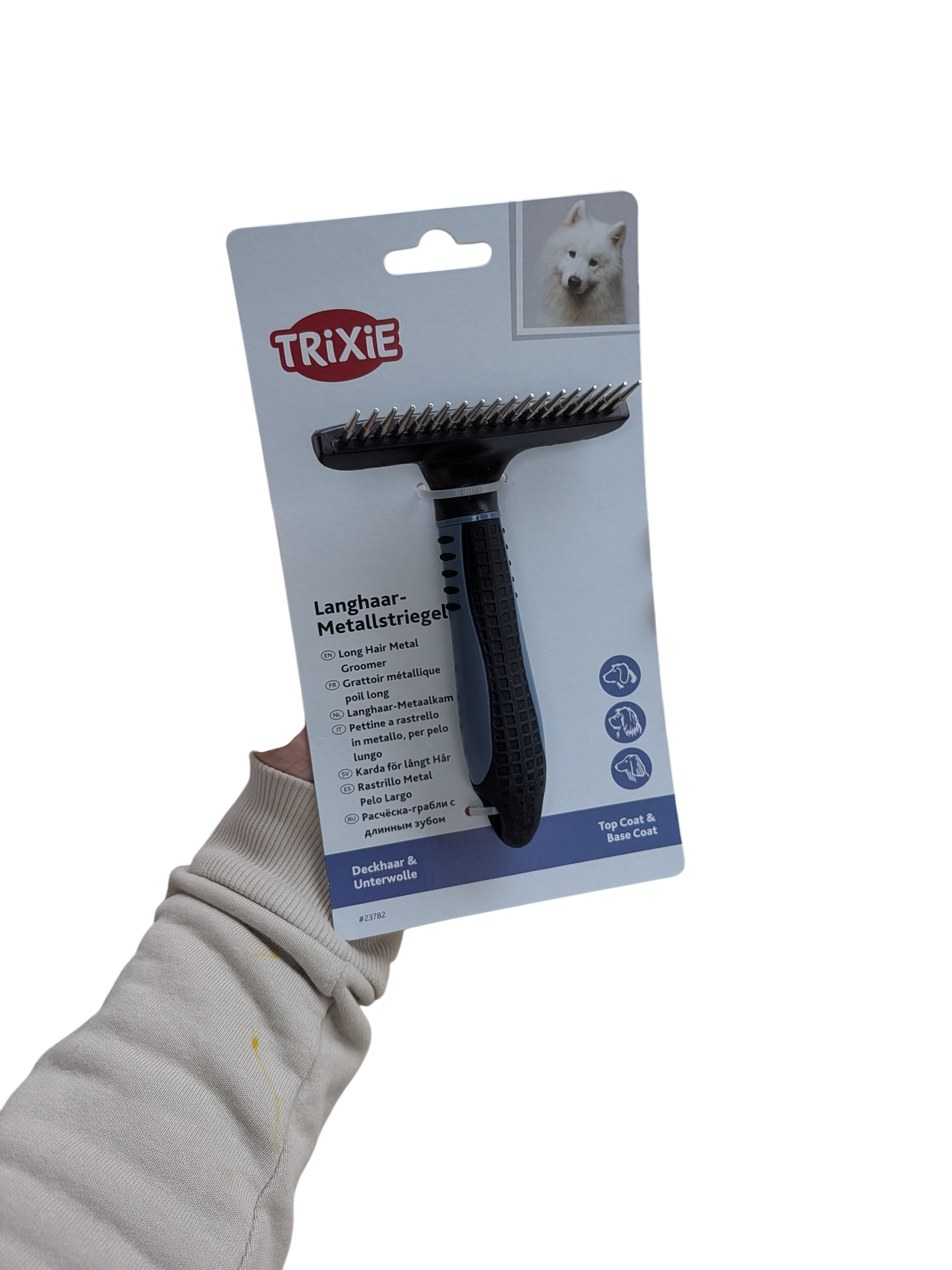Metalowy grzebień przeznaczony do intensywnej pielęgnacji podszerstka u psów o długiej sierści.