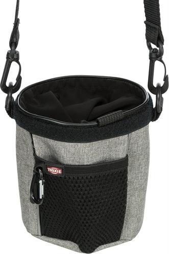 Het Trixie Snackzakje Multi Twist Assorti 17X12 cm is een multifunctionele snackzak voor de hond, met regelbare draaisluiting, poepzakjeshouder en karabijnhaak, waterdicht. Dit handige snackzakje is van alle markten thuis! Uiteraard biedt dit handige tasje alle ruimte voor de beloningssnacks die jij op wandeling mee wilt nemen voor jouw hond. Ideaal aan dit tasje is de handige twist off-sluiting. Door de stof strakker of losser in elkaar te draaien, reguleer je de toegang tot de inhoud. De sluiting kan geheel gesloten worden indien er even geen snacks gepakt hoeven te worden en beschermt dan ook tegen de regen. Hiernaast is dit handige zakje voorzien van een geïntegreerde poepzakjes-dispenser, zodat je ook jouw poepzakjes altijd bij de hand hebt zonder nog een extra houder mee te hoeven nemen. Aan de karabijnhaak maak je bijvoorbeeld een hondenfluitje of clicker vast en in de buitenvakjes stop je losse spulletjes die je tijdens de wandeling meeneemt. Met reflecterende buitenvakken die het tasje goed zichtbaar maken! Inclusief traploos verstelbare riem.