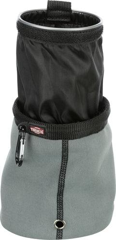 Het Trixie Snackzakje Twist Treat Assorti 14X11 cm is een multifunctionele snackzak voor de hond, met regelbare draaisluiting, poepzakjeshouder en karabijnhaak, waterdicht. Dit handige snackzakje is van alle markten thuis! Uiteraard biedt dit handige tasje alle ruimte voor de beloningssnacks die jij op wandeling mee wil nemen voor jouw hond. Ideaal aan dit tasje is de handige twist off-sluiting. Door de stof strakker of losser in elkaar te draaien, reguleer je de toegang tot de inhoud. De sluiting kan geheel gesloten worden indien er even geen snacks gepakt hoeven te worden en beschermt dan ook tegen de regen. Hiernaast is dit handige zakje voorzien van een geïntegreerde poepzakjes-dispenser, zodat je ook jouw poepzakjes altijd bij de hand hebt zonder nog een extra houder mee te hoeven nemen. Aan de karabijnhaak maak je bijvoorbeeld een hondenfluitje of clicker vast, en in de buitenvakjes stop je losse spulletjes die je op de wandeling meeneemt. Met reflecterende buitenvakken die het tasje goed zichtbaar maken! Met bevestigingslus en -clip voor aan broekriem.