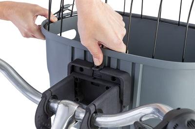 De fietsmand is eenvoudig afneembaar dankzij de klik-snelsluiting. Hierdoor neem je de mand snel mee naar binnen of klik je hem los wanneer je je fiets parkeert. De mand is geschikt voor montage aan het stuur met een universele stuurhouder (niet inbegrepen).