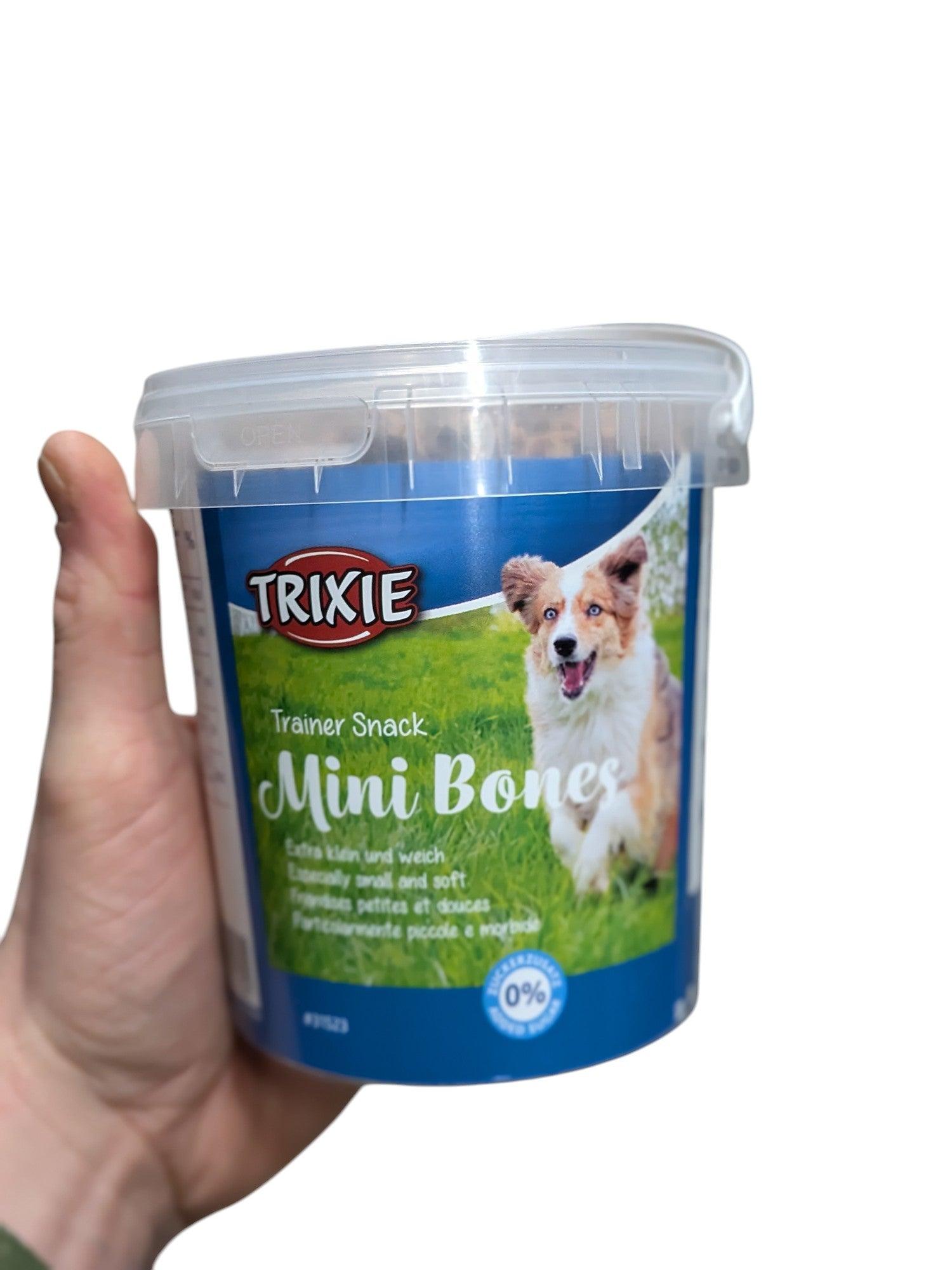 De Trixie Trainer Snack Mini Bones 500 gram zijn aanvullend diervoer in de vorm van smakelijke beloningssnoepjes voor de hond met gevogelte, lam en rund, ideaal voor bij training en cursus. De smakelijke snoepjes zijn uitgevoerd in de vorm van botjes met verschillende kleuren en verschillende smaken, namelijk rund, lam en gevogelte. Ze zijn extra klein en zacht en daardoor ideaal voor het gebruik bij cursus en training. De snoepjes worden geleverd in een handige, hersluitbare kunststof verpakking.