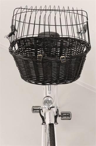 De fietsmand wordt eenvoudig aan het stuur bevestigd via twee stevige ophanghaken. Zo heb je je hond of kat altijd goed in zicht zonder dat je achterom hoeft te kijken. De metalen draadkap voorkomt dat je huisdier onderweg uit de mand springt, terwijl het open ontwerp zorgt voor voldoende frisse lucht en zicht naar buiten. Hierdoor voelt je dier zich veilig en betrokken tijdens de rit.