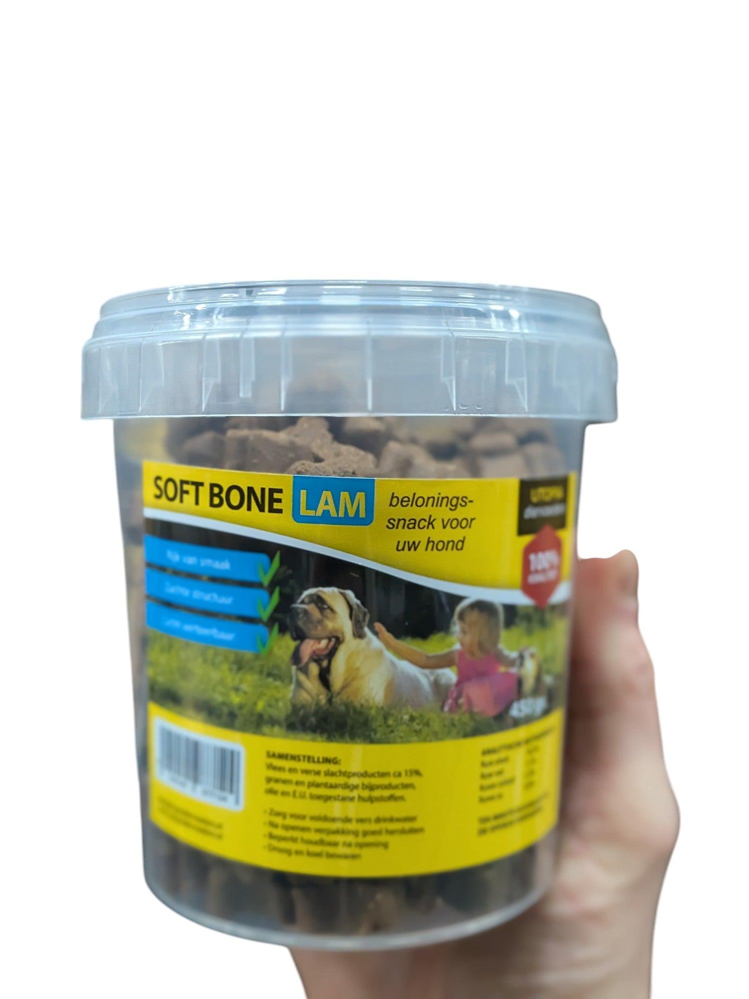 De Utopia Soft Bones Lam zijn aanvullend diervoeder voor de hond, heerlijk, zachte snacks van compact formaat met lam, perfect voor tijdens de training.