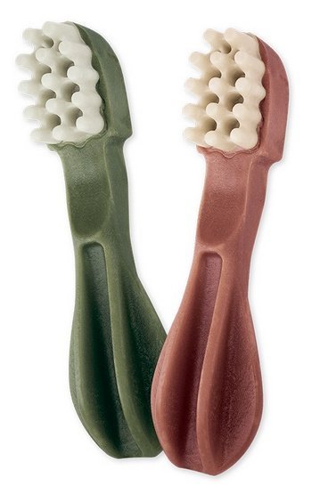 Ten wariant ma kształt szczoteczki, dzięki czemu podczas żucia działa jak „mechaniczna” pomoc w czyszczeniu: wypustki i zagłębienia docierają do trudno dostępnych miejsc, a twardsza struktura zachęca do dłuższego gryzienia. W opakowaniu znajdują się 12 sztuk, co ułatwia regularne stosowanie (zwykle 1 sztuka dziennie), bez konieczności częstych zakupów.