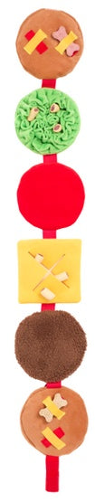 Snufflerz Cheeseburger to interaktywna zabawka węchowa dla psa, która angażuje pupila i pobudza jego naturalny instynkt poszukiwania smakołyków. Wystarczy ukryć przysmaki w warstwach pluszowego cheeseburgera, a Twój pies z radością zacznie je wyszukiwać.