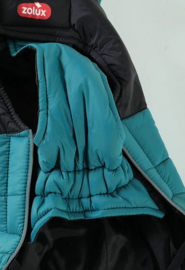 Zolux kurtka puchowa z szelkami dla psa w rozmiarze R.40 (niebieska) to praktyczne ubranko na chłodne dni, które łączy dwie funkcje w jednym produkcie: ocieplaną kurtkę oraz zintegrowane szelki do podpięcia smyczy. Dzięki temu przed wyjściem nie musisz zakładać osobnych szelek pod spód ani kombinować z przekładaniem pasków przez materiał – pies jest ubrany, zabezpieczony i gotowy do spaceru w kilka chwil. Model został zaprojektowany tak, aby wspierać komfort termiczny podczas zimna, wiatru i gorszej pogody, a jednocześnie zwiększać kontrolę nad psem i jego widoczność po zmroku dzięki odblaskowej lamówce.